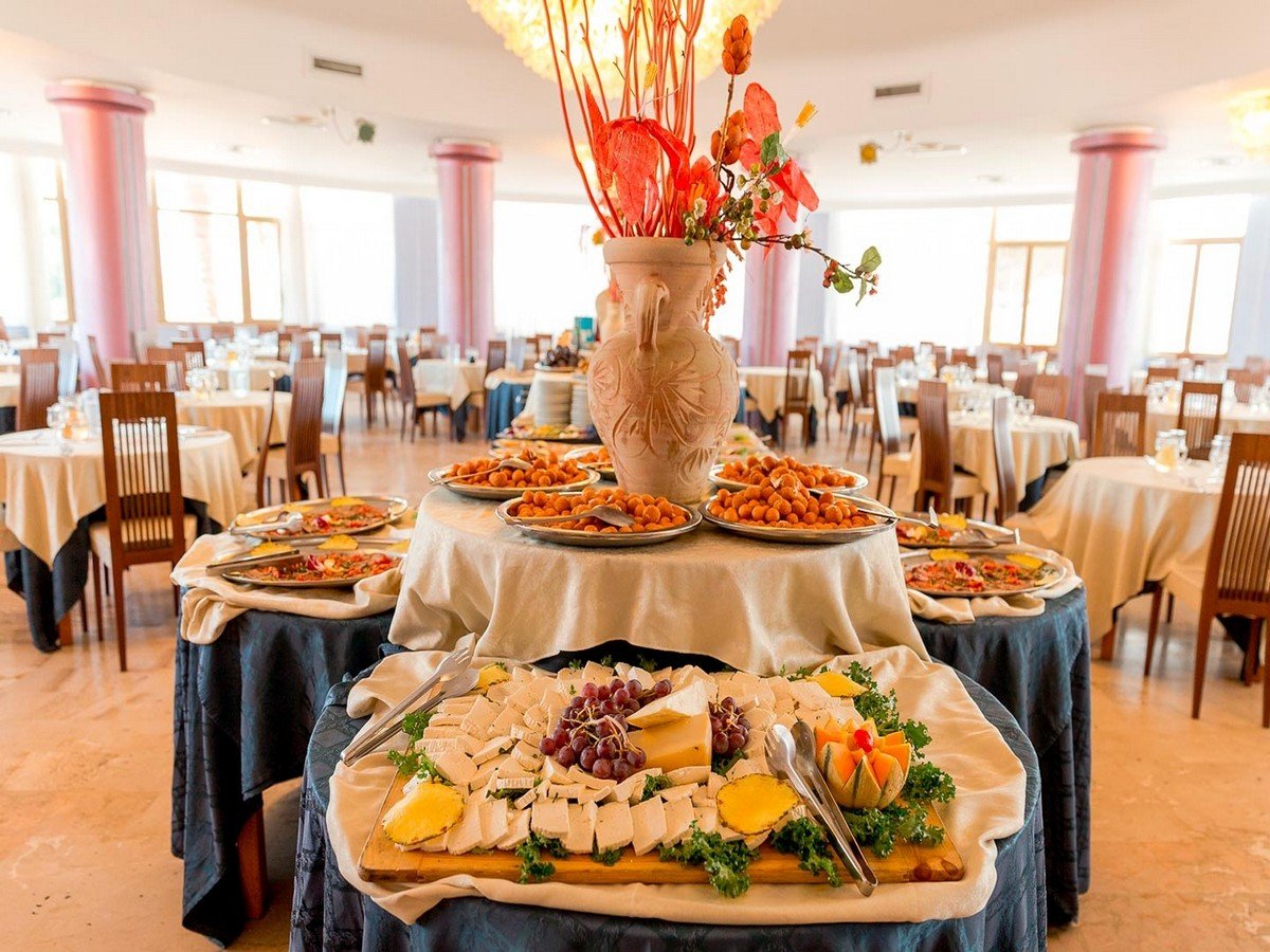Il ristorante centrale, coperto e climatizzato, dispone di ampie vetrate che si affacciano sul mare e sulla piscina. Cene a tema. A colazione è prevista la possibilità di effettuare una colazione soft al bar dalle 10.00 alle 11.00, con caffè americano e cornetteria. Angolo natura e benessere, e per gli ospiti che soffrono di intolleranze alimentari (glutine/lattosio) sono disponibili prodotti base confezionati (pane, pasta, biscotti senza glutine e/o lattosio, gelato senza lattosio); i clienti potranno integrare il tutto con prodotti da loro forniti, forniteci la segnalazione in fase di prenotazione. Il ristorante a mare “Il Boschetto”, con servizio al tavolo e su prenotazione, permette agli ospiti di gustare, a pranzo, piatti preparati alla griglia. Il Soft Inclusive prevede dalle 10:00 alle 19:00 presso il Bar Hall consumo illimitato, ed in modalità self-service dai dispenser e in bicchiere di plastica, di acqua, aranciata, cola, succhi di frutta e thè freddo. A pagamento alcolici e superalcolici, caffetteria, bevande e acqua non alla spina, gelati, snack e tutti i prodotti confezionati, oltre a tutto quanto non specificato alla voce “Soft Inclusive”. Biberoneria disponibile dal 1° Giugno al 28 settembre a pagamento obbligatorio per i bambini da 0 ai 3 anni da pagare in loco all’arrivo: allestita in locale adibito ed attrezzata con microonde, scaldavivande, frullatore, frigo, lavello, seggioloni; vengono forniti: pastine, brodi, passati, omogeneizzati (carne, pesce, frutta), frutta fresca, biscotti, tisane, succhi di frutta, yogurt, latte fresco (non in polvere). Apertura in comodi orari prestabiliti con l’assistenza di personale dedicato. La biberoneria è aperta dalle ore 12:00 alle ore 14:00 e dalle ore 19:00 alle 21:00.