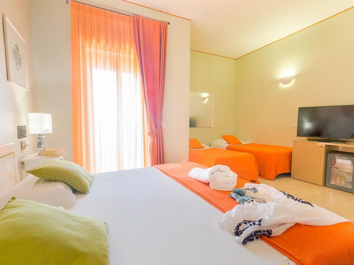 Camera Standard: Le camere standard ammobiliate con arredamento semplice, dispongono di bagno con vasca o doccia è accessoriato con asciugacapelli e set cortesia. La dotazione della camera comprende televisione a schermo piatto con ricezione impianto satellitare, wi-fi, telefono, cassetta di sicurezza elettronica, mini-frigo, climatizzazione autonoma. Occupazione camere: massimo 4 Persone in letti piani.